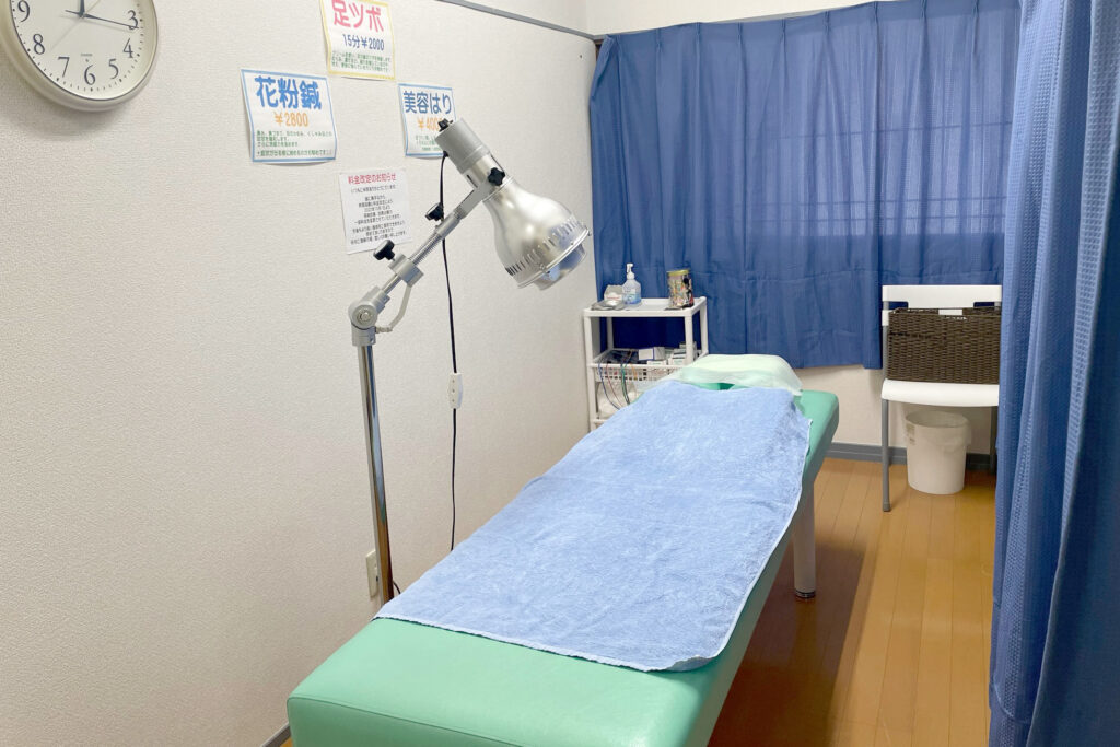 | 鍼灸治療 ・1か所(片側の腕、肩、足など) ・複数個所をまとめて (身体の前面か後面、両足など) ・花粉鍼 ・お灸(1か所) | 2,000円~ 3,500円~ 2,800円 800円 |